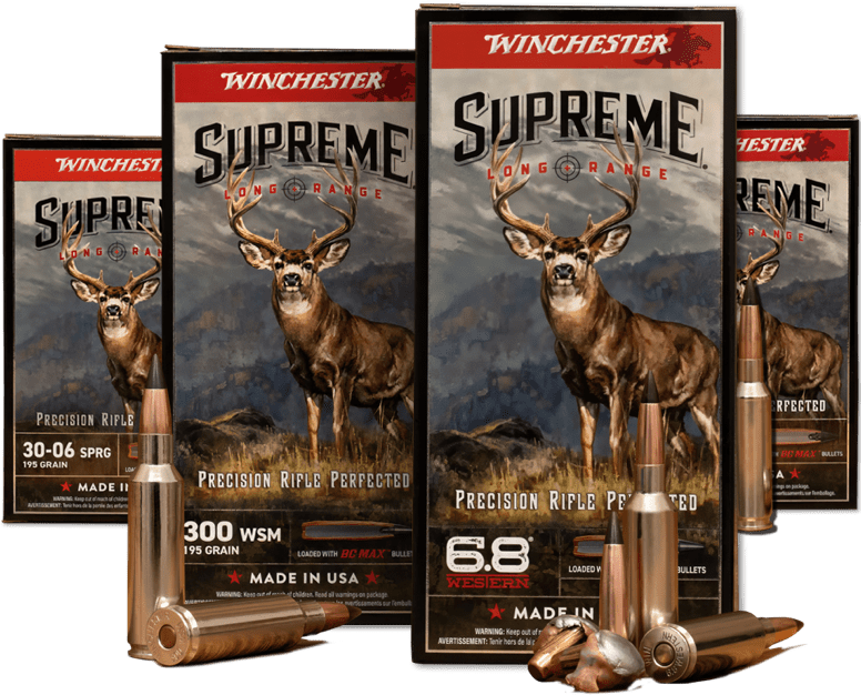 Winchester® Supreme® Long Range is purpose-built rifle ammunition for hunting game at even the most extreme of ranges by incorporating BC MAX™ bullet technology. Engineered with precision drawn, thick-walled jackets for long range terminal performance and match grade accuracy. Winchester BC MAX bullets are Precision Rifle Perfected.