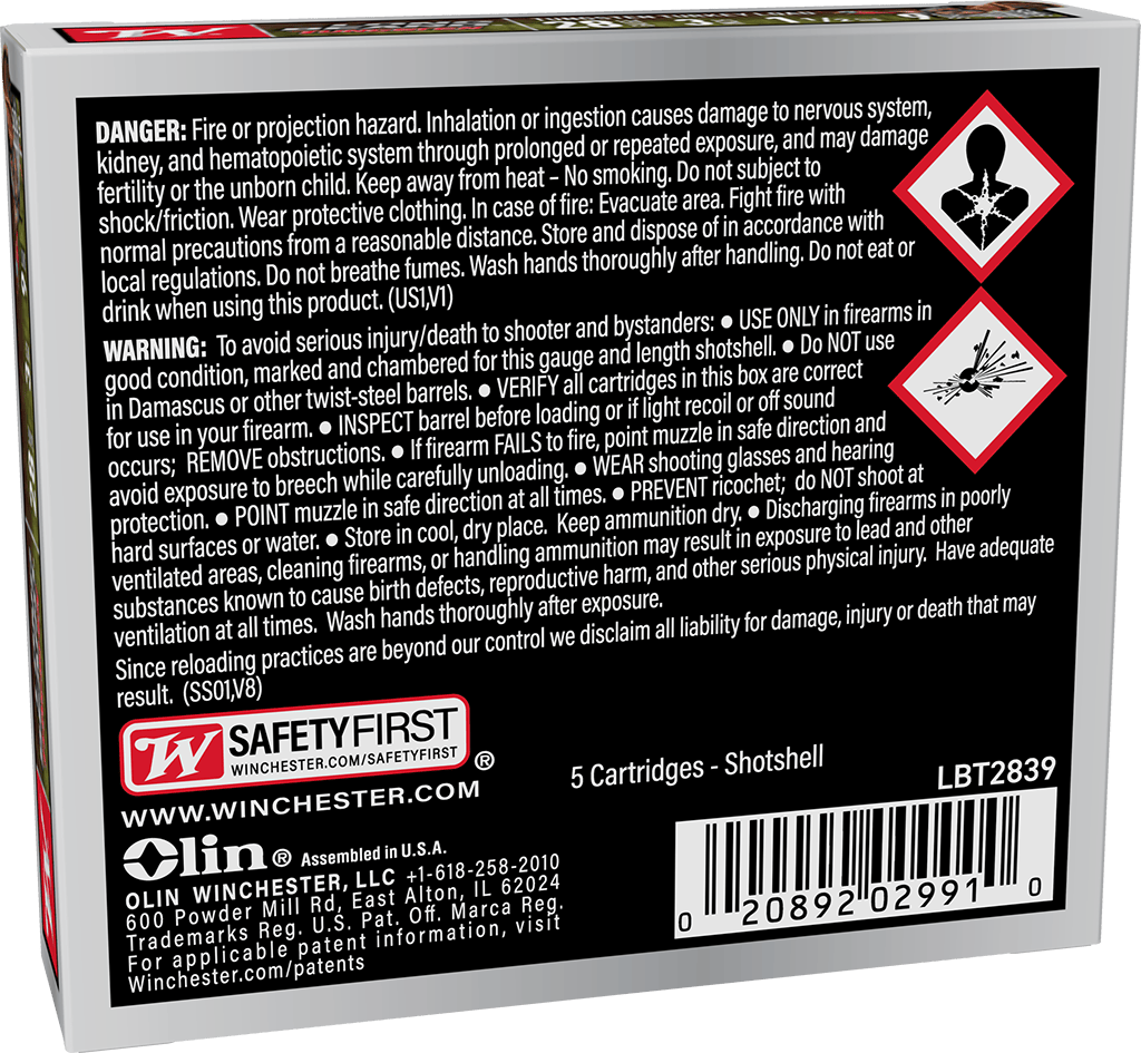 * Compared to traditional 12 Gauge #5 lead turkey loads